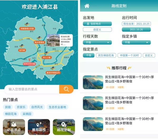 金華市浦江縣生態旅游資源豐富,名優特水果產品眾多。在數字化改革背景下,由浙江森特信息(托普云農全資子公司)支撐打造的浦江“數字農旅”應用,正在成為浦江縣鄉村旅游轉型升級的重要抓手。應用充分發揮互聯網在鄉村旅游游前、游中、游后的優勢,形成線上線下服務體驗的閉環過程,積極探索“農旅+互聯網”的發展模式,加快農旅產業的發展,推動農旅產業由數量型向質量型發展,全面規范提升發展水平。