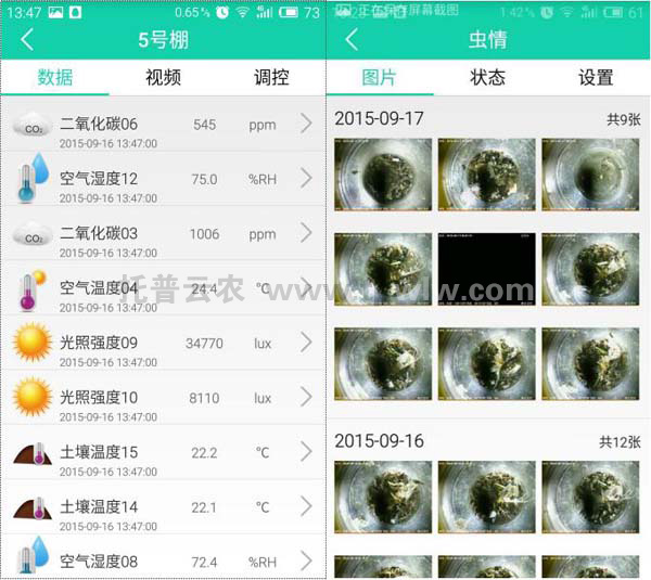 ?????? 其蔬菜基地接入空氣溫度、空氣濕度、土壤溫度、土壤水分、光照、CO2、葉面溫度、莖稈微變化、溫室小管家等傳感設備,精確采集蔬菜大棚的環境信息和植物生理數據,采集數據可上傳至智慧云平臺,通過網頁設置傳感器上下限數值,控制風機、內外遮陽、水肥等設備,保證蔬菜最佳生長環境。大田、玉米基地、棉花基地配有氣象站、蟲情測報燈、植物養分測定儀、視頻監控等設備,綜合監測基地蟲情、墑情、苗情、災情信息。數據自動采集、遠程查看,使農事操作者從繁瑣、繁重的人工管理作業中解放出來,坐在電腦前,即可通過網頁或手機APP輕松掌握各基地情況。