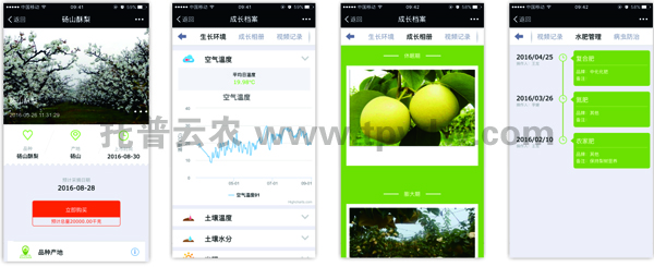 碭山“數(shù)字果園”的托普云農(nóng)綜合管理平臺還嵌入了農(nóng)產(chǎn)品質(zhì)量安全追溯系統(tǒng),實現(xiàn)“從農(nóng)田到餐桌”的全程可追溯化管理。該系統(tǒng)是區(qū)域農(nóng)產(chǎn)品質(zhì)量安全信息統(tǒng)一發(fā)布和查詢平臺,根據(jù)農(nóng)產(chǎn)品“一物一碼”標準,消費者可以掃描農(nóng)產(chǎn)品上附帶的而為買,準確了解農(nóng)產(chǎn)品從生產(chǎn)、加工、物流、倉儲、銷售等全過程信息。