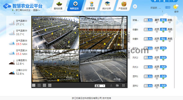 用戶可遠程實時通過手機APP或網(wǎng)頁PC端查看數(shù)據(jù)及控制相關設備,也可通過視頻監(jiān)控系統(tǒng)實時查看大棚內作物生長情況。