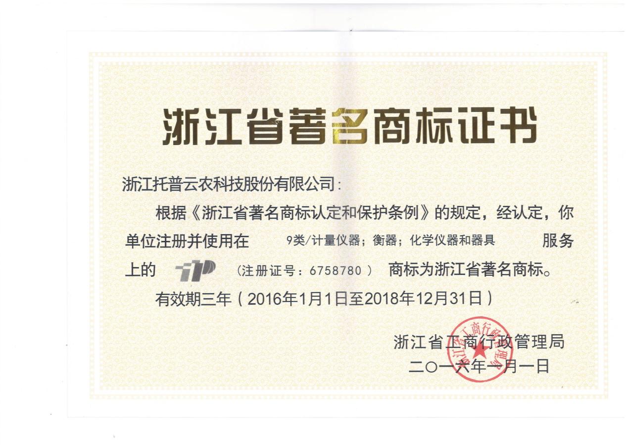 - 托普商標榮獲浙江省著名商標發(fā)表日期:2016-05-10 來源:托普云農(nóng) 瀏覽次數(shù):3958次