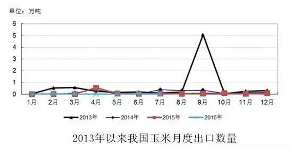 海關(guān)數(shù)據(jù)顯示,7月份我國玉米出口量為50噸,8月份出口420噸。2015/16年度以來累計出口0.38萬噸,同比下降66.55%。近年來國內(nèi)玉米出口維持下降趨勢。由于頭號出口大國美國玉米下一年度預計豐產(chǎn),且出口報價較低,2016/17年度我國玉米出口將非常有限。