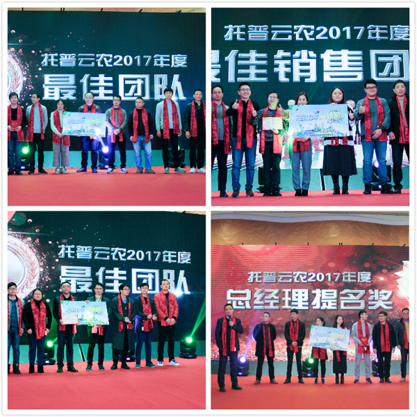 農(nóng)業(yè)信息化是農(nóng)業(yè)現(xiàn)代化發(fā)展的基礎(chǔ)。過去一年,托普云農(nóng)在農(nóng)業(yè)信息化的道路上屢獲農(nóng)業(yè)部門和行業(yè)的認(rèn)可。憑借前沿的技術(shù)研發(fā)與落地應(yīng)用能力,先后榮獲世界物聯(lián)網(wǎng)博覽會、匠農(nóng)杯等業(yè)內(nèi)頂級大獎。在榮耀的成績背后,離不開一大批優(yōu)秀員工和團(tuán)隊的辛勤付出。針對2017年表現(xiàn)突出的團(tuán)體和個人,現(xiàn)場頒發(fā)出年度銷售精英、創(chuàng)新改善、優(yōu)秀員工獎、最佳新銳獎等個人獎項以及最佳團(tuán)隊、總經(jīng)理提名等團(tuán)隊類獎項。