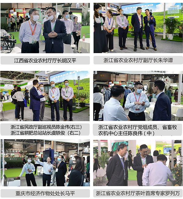 浙江省農業農村廳副廳長蔡元杰(左二)、省植保農藥站站長陸劍飛(左一)、西湖區農業農村局副局長姚嵐(右二)參觀托普云農展位