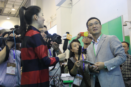 圖為:媒體采訪托普儀器陳渝陽總經理、朱旭華副總經理