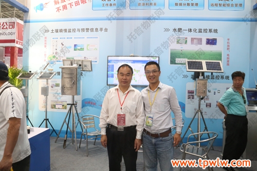 展會(huì)期間,農(nóng)業(yè)部種植業(yè)管理司曾衍德司長、農(nóng)業(yè)部全國農(nóng)技推廣中心陳生斗主任、謝建華副主任、北京市土肥站廖洪副站長、甘肅省土肥站崔增團(tuán)站長、廣西區(qū)土肥站賓士友站長都陸續(xù)到托普儀器展位視察,公司陳渝陽總經(jīng)理、陳曦經(jīng)理為一眾領(lǐng)導(dǎo)詳細(xì)介紹了物聯(lián)網(wǎng)系統(tǒng)及各種儀器設(shè)備。謝建華副主任在視察期間與陳渝陽總經(jīng)理熱切的聊起了“托普土壤墑情監(jiān)測與預(yù)警信息系統(tǒng)”,他表示對(duì)墑情、旱情的有效把握是提高災(zāi)情防治、提高種植產(chǎn)量、高效節(jié)水施肥的重要保證。