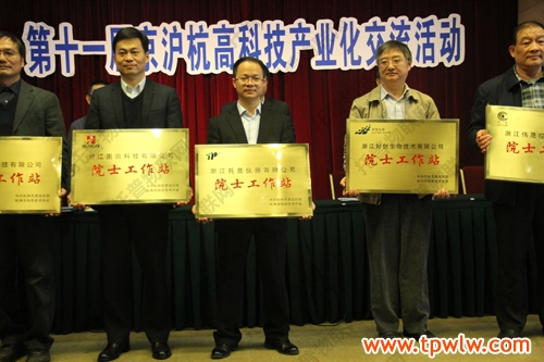 11月28日,第十一屆京滬杭(國際)高科技產業化交流活動在杭州之江飯店會議中心開幕。杭州市副市長張耕,浙江省科協黨組副書記、副主席陳世權出席活動并致辭,杭州市委人才辦副主任樓建忠、市經信委副主任郝志毅、市科委副主任丁永剛、市科協副主席姚樹列等出席會議。各科技領域相關院士、以“浙江托普儀器有限公司”在內的10家杭州市院士專家工作站建站合作院士及企業領導、相關領域專家學者、行業協會代表、新聞媒體記者等,約200余人受邀參加會議。杭州市科協黨組書記、主席鄭健波主持開幕式。