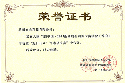 2015年8月5日,i創(chuàng)中國(guó)· 2015浙商創(chuàng)新創(chuàng)業(yè)大賽拱墅區(qū)專場(chǎng)暨“旭日計(jì)劃”評(píng)選總決賽(以下簡(jiǎn)稱“浙商創(chuàng)新創(chuàng)業(yè)大賽”)如期舉行。杭州智農(nóng)科技有限公司參與總決賽,并成功躋身16強(qiáng)之列。
