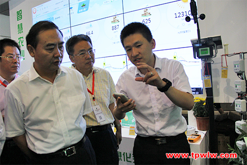 圖為:安徽省農委孫正東主任觀摩托普云農傳感器設備