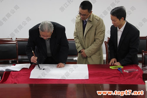 圖為:陳子元院士為托普題詞并與陳渝陽總經理、朱旭華副總經理合影留念隨后,陳子元院士在陳渝陽總經理的陪同下出席了托普儀器全國經銷商見面會并作寄語。會議上,陳院士首先肯定了托普陳渝陽總經理個人的成就,他說到:陳渝陽畢業于浙江農業大學,并且通過自己不懈的努力,結合國家宏觀政策對農業的大力支持,結合自己所學的專業知識,在大家的共同支持和幫助下,既開拓了自己的事業空間,更可貴的是通過他的努力與實踐,也在很大程度上豐富了我們原先薄弱的農業儀器設備,要知道這也是解決“三農”問題的有力措施,對推動農業現代化具有明顯的助推作用。