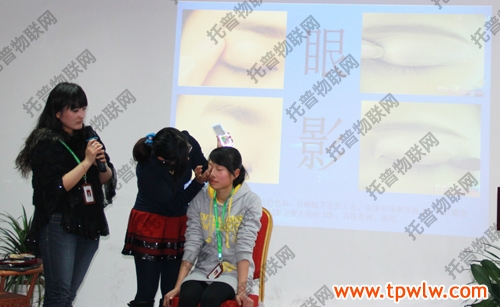 圖為:活動現場粉妝玉琢,國色天香等等,這些都是形容女人美貌的詞語,如今,女人的美貌不僅僅是靠先天條件,更要靠后天的保養與修飾。三八婦女節這天,托普儀器就為大家講解了保養、化妝以及美發的知識,并在現場為大家演示化妝技巧和美發技巧。