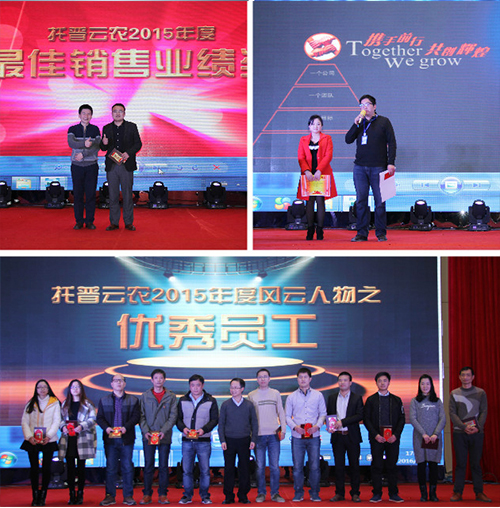 本屆年會由行政人事總監(jiān)主持,公司副總朱旭華先生向全體托普人做了公司2015年總結(jié)報告,并分析這一年成績和存在的不足。陳渝陽總經(jīng)理以中央一號文件為駐點,全面分析了中國現(xiàn)代農(nóng)業(yè)的發(fā)展趨勢,并對公司目前所處的宏觀環(huán)境進行了深入的分析,并公布公司2016年的戰(zhàn)略發(fā)展規(guī)劃。表示企業(yè)發(fā)展離不開優(yōu)秀人才,其發(fā)展成果也終將惠及廣大托普人,并重申了公司內(nèi)部優(yōu)秀人才的股權(quán)激勵機制,讓更多優(yōu)秀的事業(yè)合伙人能夠分享到公司的發(fā)展成果。期間公布了2015年度優(yōu)秀員工并對其表示感謝和祝賀!