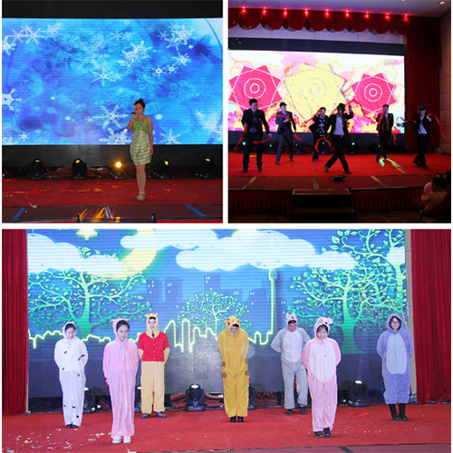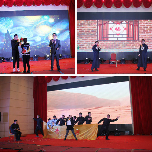 精彩紛呈的“新故事,新起點”2016新春年度盛典在四位支持人的深情開場中拉開序幕。熱情歡樂《金獅送?!奉I(lǐng)先開演,為大家送來了新年的祝福;勁舞《說愛就愛》,激情火爆,樂觀向上的精神風貌展現(xiàn)得淋漓盡致;研發(fā)團隊的舞臺劇《電影院那些事》演繹了公司研發(fā)人員豐富飽滿的內(nèi)心世界。一首《飄雪》,瞬間將我們就帶入了純情浪漫模式。古箏演奏,優(yōu)雅悠揚;激情昂揚的《保衛(wèi)黃河》將整個晚宴推向高潮;銷售部老男人們的《群魔亂舞》讓大家更是樂的開懷暢飲!期間的互動環(huán)節(jié)及歡樂大抽獎讓全場氛圍熱烈而又充滿期待,高潮迭起!