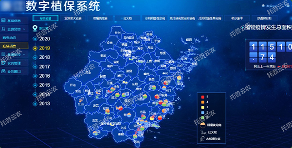 植物檢疫:密切關注追蹤本省重點檢疫性有害生物,如亞洲梨火疫病、柑橘黃龍病、紅火蟻等,以五色圖、數據列表、折線圖等多種形式展示各市縣疫情發生和防治情況,以及疫情發生等級和嚴重程度,多年數據比對分析,防止有害生物疫情擴散蔓延。