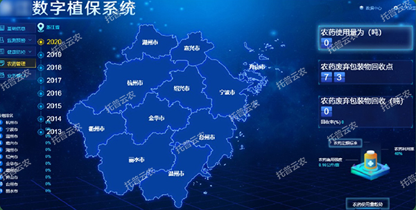 藥政管理:通過數字化方式展示各地市農藥生產、使用和廢棄包裝回收情況和相關數據以及肥藥兩制改革的相關政策與方案的推動。