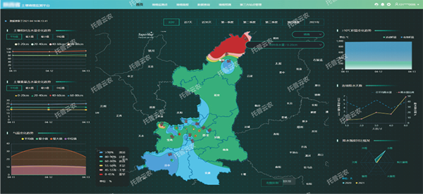 土壤墑情監測:包括實時數據采集、數據在線分析、任務管理、苗情監測和遙感分析。傳感器采集實時數據,以列表和圖表形式展現,包括土壤含水量和土壤溫度、氣象數據、種植數據和專題圖。所有傳感器采集的數據按時間以列表形式展現,一目了然,支持導出Excel格式。