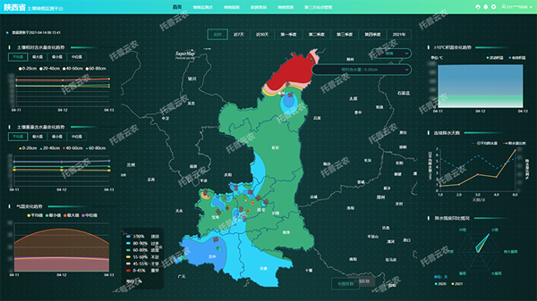 墑情監(jiān)測(cè)站點(diǎn)收集墑情資料,并在田間試驗(yàn),定期測(cè)定記錄土壤含水量,通過墑情設(shè)備,自動(dòng)采集墑情數(shù)據(jù)。所有數(shù)據(jù)和資料匯總到墑情自動(dòng)監(jiān)測(cè)系統(tǒng),系統(tǒng)負(fù)責(zé)對(duì)收集到的資料和田間試驗(yàn)結(jié)果進(jìn)行統(tǒng)計(jì)、分析和梳理,形成墑情監(jiān)測(cè)“一張圖”,體現(xiàn)監(jiān)測(cè)時(shí)效性,形成土壤墑情評(píng)價(jià)指標(biāo)體系。