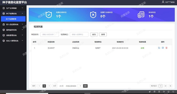 4、種業(yè)服務(wù)管理:種業(yè)服務(wù)平臺(tái)立足于服務(wù)管理,提供多種專(zhuān)題分析模塊,助力于解決種業(yè)發(fā)展過(guò)程中因品種與技術(shù)更新不匹配,種子質(zhì)量參差不齊、種業(yè)知識(shí)獲取有限等問(wèn)題,平臺(tái)的建立可進(jìn)一步科學(xué)提高農(nóng)業(yè)推廣中種子管理服務(wù)工作的水平與效率。