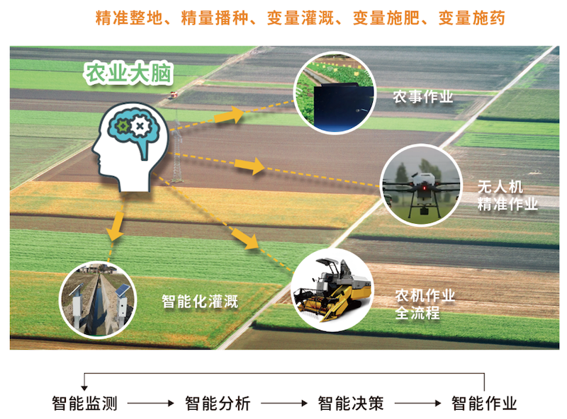 以北斗衛(wèi)星導(dǎo)航技術(shù)為基礎(chǔ),結(jié)合智能農(nóng)事建議,聯(lián)動(dòng)智能裝備,實(shí)現(xiàn)大田生產(chǎn)全程作業(yè)機(jī)械化、管理可視化,農(nóng)場(chǎng)無人化。